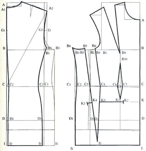 Построение спинки Строим прямой угол из точки А. АВ = высота проймы сзади (Впрз ) + прибавка. (Пример: 23 см + 2 см = 25 см.) АС = длина спины до талии (Дет) + прибавка. (Пример: 42 см + 2 см = 44 см.) CD = высота линии бедер (Вб). (Пример: 18 см. Подробнее...
